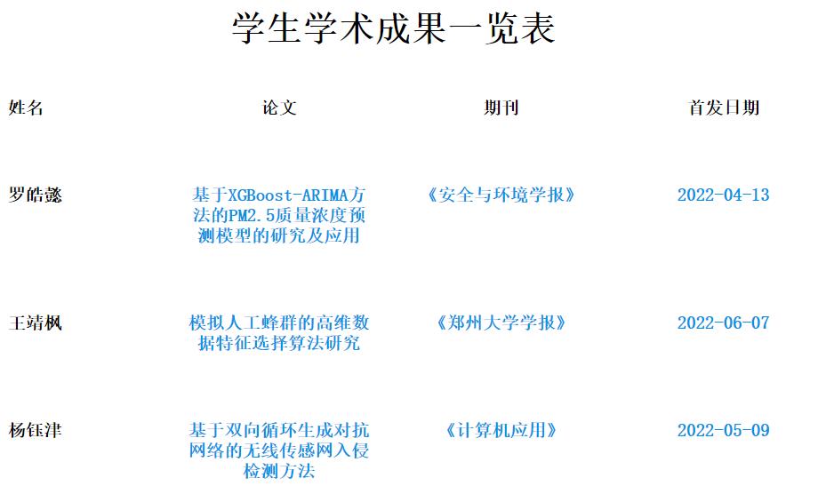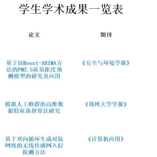 学生学术成果一览表