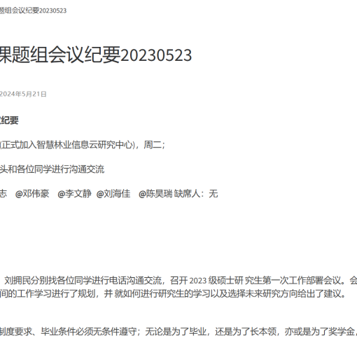 3、从现在开始,采取不定期组会;正式开学后,着手配酿文章初稿,记得手机保持畅通周之内我随时都可能会找你;