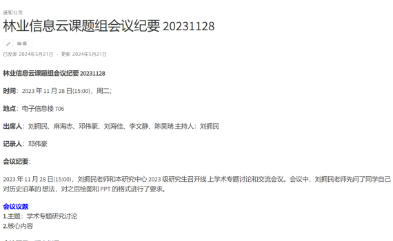 林业信息云课题组会议纪要 20231128 时间:2023 年 11 月 28 日(15:00),周 […]